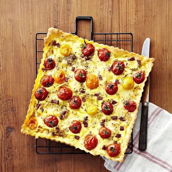 Torte mit 3 Schweizer Käsesorten und Kirschtomaten
